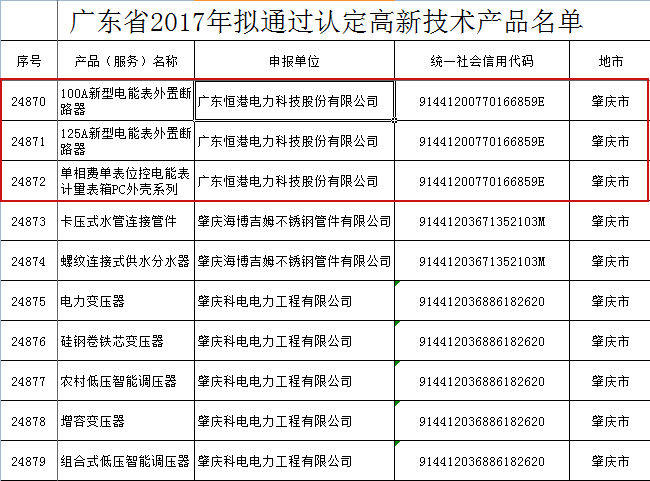 附件1:廣東省2017年擬通過認定高新技術產品名單