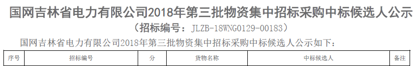 熱烈祝賀我司在吉林省電力有限公司2018年第三批物資集中招標采購中標