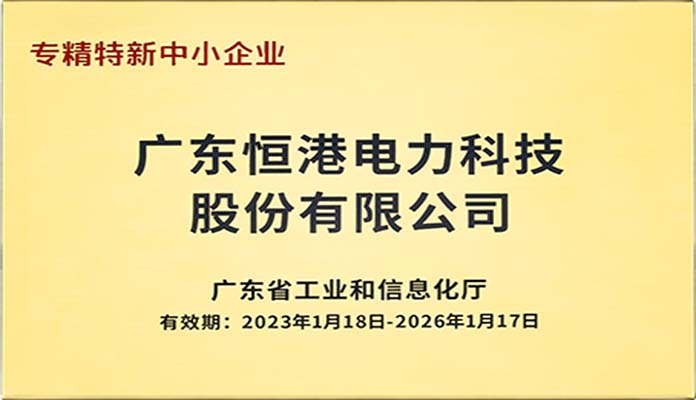 為深入貫徹習(xí)近平總書記關(guān)于“培育一批‘專精特新’中小企業(yè)”的重要指示精神,落實(shí)工業(yè)和信息化部《優(yōu)質(zhì)中小企業(yè)梯度培育管理暫行辦法》,廣東省工業(yè)和信息化廳組織開展了2022年專精特新中小企業(yè)申報(bào)和2019年到期復(fù)核企業(yè)的相關(guān)審核工作。廣東恒港電力科技股份有限公司經(jīng)主管部門推薦、專家評(píng)審和公示等程序,憑借在科技創(chuàng)新發(fā)展方面的突出成績(jī)順利入選,榮獲2022年省級(jí)“專精特新”企業(yè)榮譽(yù)稱號(hào)!