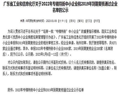 本次通過“專精特新”的審核是對(duì)我司創(chuàng)新發(fā)展成績(jī)的肯定,意味著我司技術(shù)創(chuàng)新又邁上新的臺(tái)階。