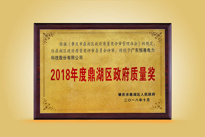 2018年度鼎湖區(qū)政府質(zhì)量獎牌匾